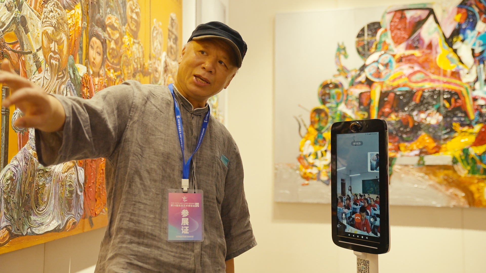乡村小学生在艺博会浏览名师名画